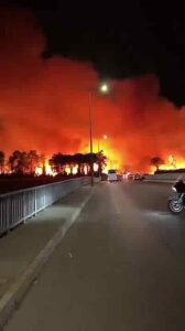 A forest fire in Alanya, Turkey, has approached residential areas due to strong winds